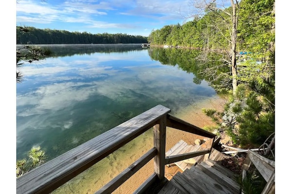 Unique loft with direct waterfront access and large deck on a peaceful all-sports lake, perfectly centrally located 2 minutes away from the Hideaway Bar and ORV Trails! Relax after a day on the trail or ice fishing in front of a wood-burning fireplace. This cabin was taken down to the studs in 2022. Enjoy modern amenities while experiencing the original midcentury charm.