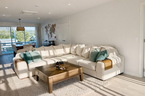 Spend your days at the lake, then return to your own private outdoor oasis - complete with covered in lounge and dining, festoon lighting, firepit, hammocks and a relaxing spa pool. Unwind with a drink as the sun sets or gather with friends under the lights for long, easy evenings. Whether it’s summer swims, BBQs, or cosy nights by the firepit, this space is designed for year-round enjoyment and effortless holiday living.