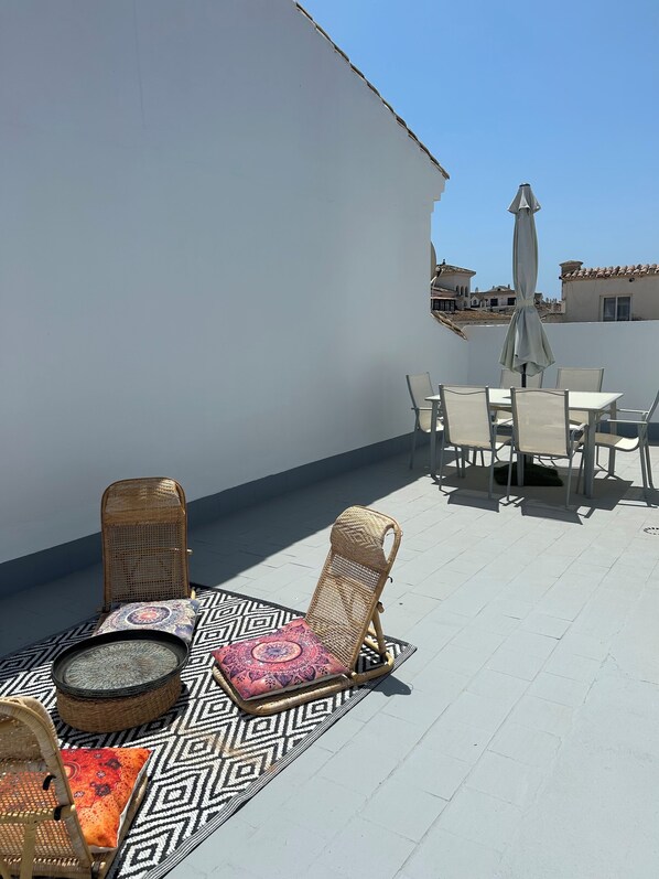 Poseidon's penthouse with large roof terrace, just a 2-minute walk from the beach