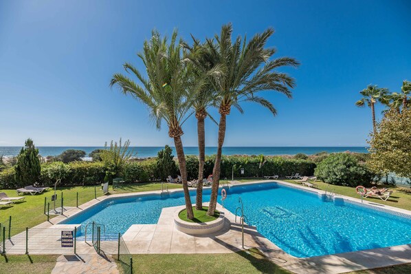 Pool - Front Line Beach Studio Apartment with Sea View, Pool, Garden & Wi-Fi (Marbella)
