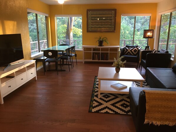 This was a perfect place for our group of friends. We spent part of our time in Yosemite and the other half on the property, enjoying both equally! The house has everything we needed, and I appreciated the sharpness of the knives! The wrap around deck is fantastic when it's cool enough, the screened in porch just as good when it's warm.