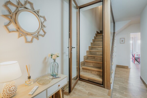 The three bedrooms and attic offer comfortable double beds, and the double sofa bed allows up to 10 guests. There are two bathrooms: one downstairs with a spacious shower and one upstairs with a bathtub.