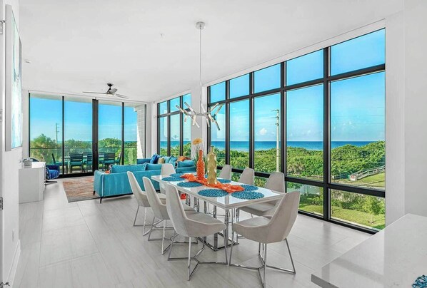 Dining - Sunset Shores | NEW Beachfront Condo w/ Luxe Master, PVT Balcony & Upscale Decor (Melbourne Beach)