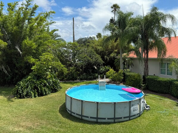 This 2 bedroom, 2 full bath guesthouse is located on the magnificent grounds of the owner's primary residence. Guests will have access to incredible amenities including multi-sport court with pickle ball, basketball, and batting cage plus a separate full sized tennis court and private above ground pool. Both bedrooms have queen beds and an additional twin bed can be made up in the living room. The kitchen is fully equipped with stainless steel appliances and there is a washer/dryer. The living room has a leather home theatre sectional with 4 reclining seats and 75 inch HDTV with Amazon Fire Stick. We are centrally located just 15 minutes from beautiful beaches, the Brevard Zoo, and the USSSA Space Coast Complex, about 35 minutes from Cape Canaveral, and about 1 hour from the Orlando airport, DisneyWorld, & Universal Studios.