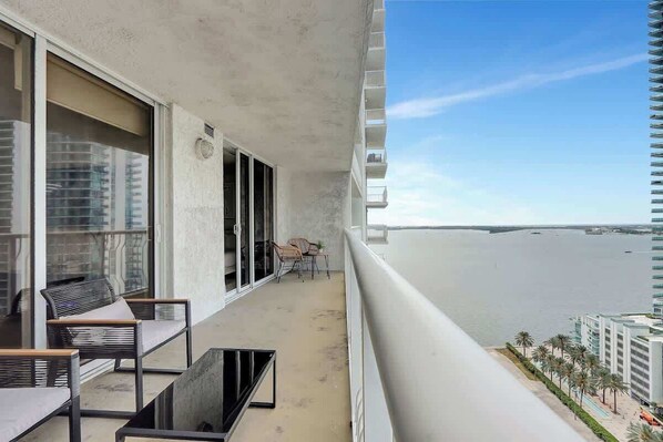 At this urban escape, unwind with 2 Smart TVs and bay views from the private balcony. Whip up meals in the fully stocked kitchen or do laundry conveniently with a stacked washer and dryer. Dive into the shared pool or let kids play in their designated playground area.