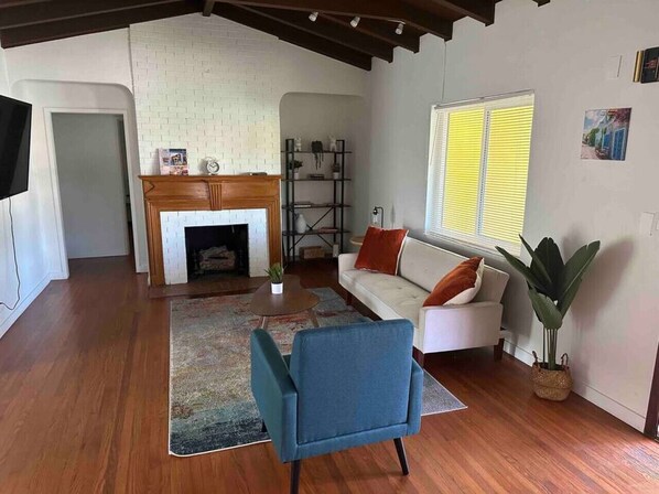 The couch is a full-size bed, can’t fit two adults. No smoking in the house. $200 cleaning fee Please do not bother other units, as there are 3 in total. Street parking only (free in the neighborhood).