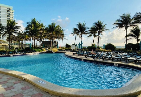 Welcome to a luxury oceanfront penthouse in Hollywood Beach, located on the top floor with breathtaking, direct views of the sea. Enjoy your private balcony overlooking the ocean, perfect for relaxing to the sound of the waves.