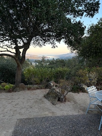 There's a large patio surrounding the property from which to enjoy the ever-changing vistas of San Francisco and Mt. Tam . And despite the mountain setting, it's only a mile drive down to the quaint Mill Valley town square.
