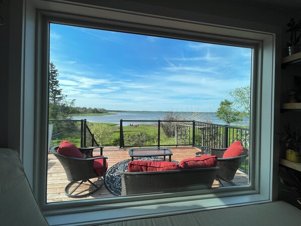 A spacious, open-concept retreat with breathtaking views of Tracadie Bay, featuring:
