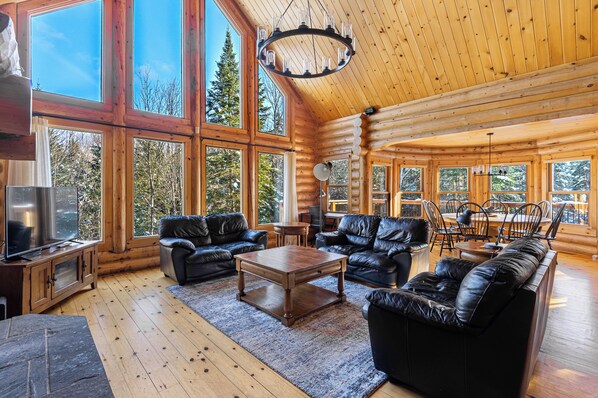 Explore Rabbit 57, a delightful 3-bedroom chalet, ideal for up to 6 guests. This log home is located at Fiddler Lake Resort, 15 minutes from Saint-Sauveur. Access to all the resort’s amenities and activities is included.