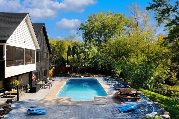 Your 4,700 sq.ft. executive home on nearly 1.5 acres awaits. Enjoy the pool (open June through September; possibly longer dependent on weather), 7 person hot tub, electric dry sauna, screened in porch, firepit with unlimited firewood included, deck, patio, Weber propane grill, walking trail, canoe, kayaks, and paddleboards (with life jackets), movie room and more! There is a 16 person maximum and tons of space for all your guests to enjoy. This home was designed for you and your group to create memories to remember for years to come!