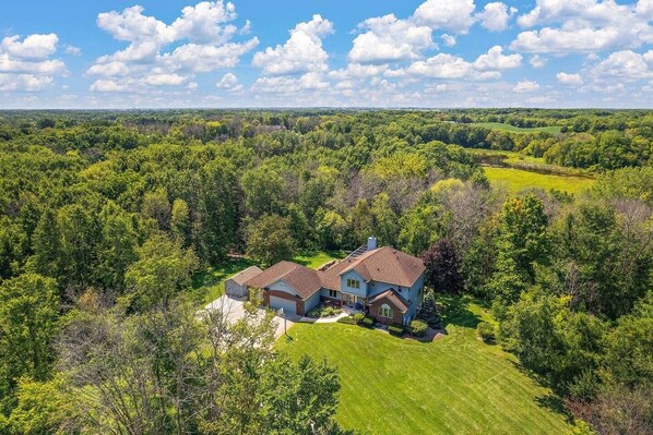 PRIVATE, WOODED ESTATE with manicured lawns & beautiful nature views