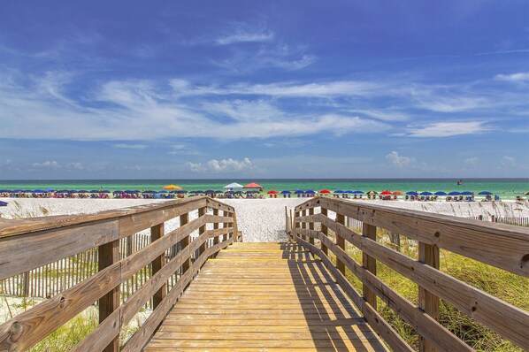 Lemon Drop - Ideally located near the Silver Sands outlet mall. This two bedroom 2.5 Destin vacation rental features not only a private pool but also a large beach front community pool! South of Scenic Gulf Drive (windancer lane) there are no roads to cross on your way to the beach, just a two minute stroll away!