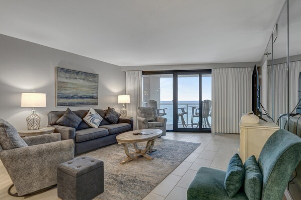 Experience the pinnacle of Gulf-front luxury in our completely renovated west-facing 12th-floor 2-bedroom condo in Beachside Two. This opulent retreat, featuring two bedrooms and two bathrooms, promises an unparalleled blend of comfort and awe-inspiring Gulf views for your Sandestin escape. The master bedroom, designed for accessibility and luxury, features a king-size bed with handicap bars in the master shower for added convenience. The second bedroom boasts a king bed, providing a regal retreat. The fully renovated kitchen seamlessly integrates with the living and dining area, creating a sophisticated and functional space for shared meals and relaxation. Step onto your balcony, where panoramic views of the Gulf unfold before you. Whether you're savoring morning sunshine or capturing the vibrant hues of a Gulf sunset, this 12th-floor oasis provides the perfect vantage point to immerse yourself in the beauty of the emerald waters and sugar-white beaches.