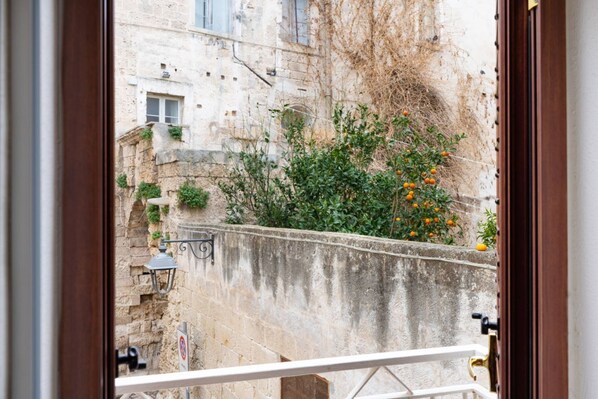 The apartment is located on the first floor of an ancient tuff stone house in the historic center of Monopoli, in a characteristic stone alley adjacent to the citrus grove of Palazzo Palmieri. The house consists of a kitchen equipped with a 4-burner gas hob, electric oven, fridge, steel sink and dining table with chairs. In the living room there is a double sofa bed. The living room leads to the bathroom with shower. Finally, there is a bedroom with a double bed equipped with a toilet and a small balcony overlooking the characteristic little alley and the citrus grove of Palazzo Palmieri. The accomodation is equipped with Wi-Fi and air conditioning.