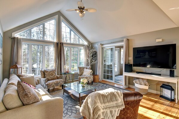 Relax. This welcoming and spacious four-bedroom cottage is three minutes from the old village of Mont-Tremblant and across from Lac Mercier, surrounded by nature, trees, and beautiful trails. When you stay at this cottage, you are close enough to Tremblant Mountain yet still private and remote enough to enjoy all of its nature, peace, and tranquility. There is ample room to park up to four cars. Excellent cell service. No Pets.