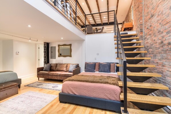 This charming 2-floor apartment in the heart of Old Montreal blends historic charm with modern comfort. The space features exposed brick walls, high ceilings and 2 outdoor terraces . With a spacious living area, fully equipped kitchen, and comfortable beds, it’s perfect for a relaxing stay and ideal for relaxing and family time. Enjoy the convenience of being steps away from Montreal’s best restaurants, shops, and historic sites. A unique blend of style and convenience for your Montreal getaway.