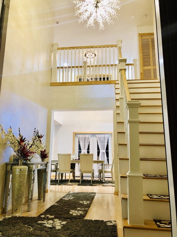 Located in heart of Pocono’s. hill top house with great view and secure neighborhood. Pocono raceway Casino, ski, fish, bike, hike, swim, dance or dine. Our list goes on and on. Pocono Is an place where endless fun around and time saving distance. 1. We have front yard parking spots 2. Back and front deck 3. BBQ and sitting arrangement on the deck. 4. Full kitchen with appliances 5. Regular leaving room and leaving room with fire place 6 . Dining and counter 7. 4bedroom and 9 beds and 3 full bathroom - arranged for 16+ people 8.Free WiFi - Breakfast- Netflix 9. Desk with chair 8. Laundry (Washar-dryer)