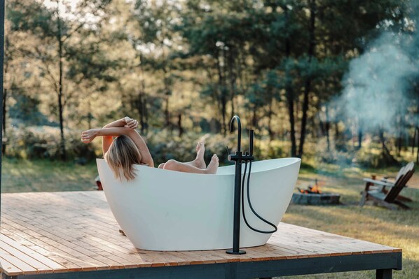 Warm outdoor baths in winter, cool outdoor dips in summer — our bathtubs are made for every season. On hot days, simply fill the tub for an easy, refreshing soak under the sunshine. In winter, they become the perfect place to unwind in a warm, steamy bath surrounded by nature.