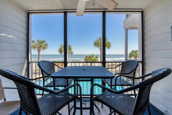 Outdoor dining - Ocean Cove 102 - Three Bedroom, Two 1/2 Bath Oceanfront Condo (Garden City Beach)