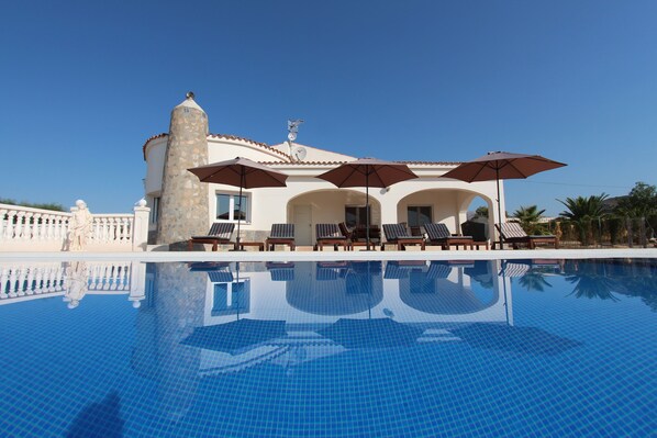 - Private swimming pool (9.5 × 4 m) with panoramic sea and coast views
