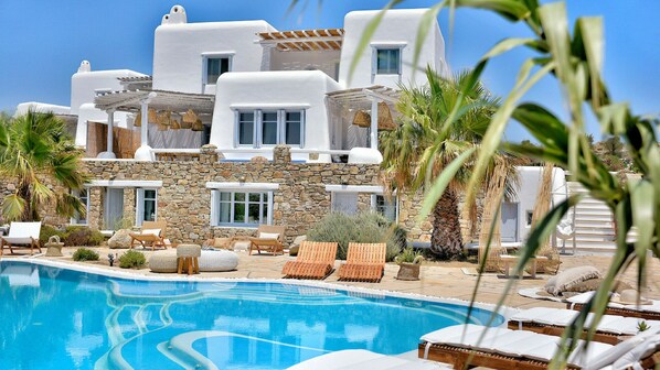 We were 12 traveler's all 18+, this Villa was even better in person. There are 7 bedrooms plus 2 mini twin rooms that we didnt know about. Property manager and people she connected us with were amazing. We hired a chef 1 night, massuer one day and tours. Villa is simply stunning and large, the proprty is large. Things to note: you aren't close to Mykonos Town, 25 min drive. Nearest grocery store, across from airport, will be necessary. We cooked ourselves one night. Other thing to note, transportation cost us €40 min one way to most places, that added up.