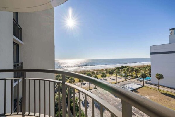 Enjoy the ocean breeze and panoramic views from your private balcony, perfect for morning coffee or an evening taking in fresh air and crashing waves.