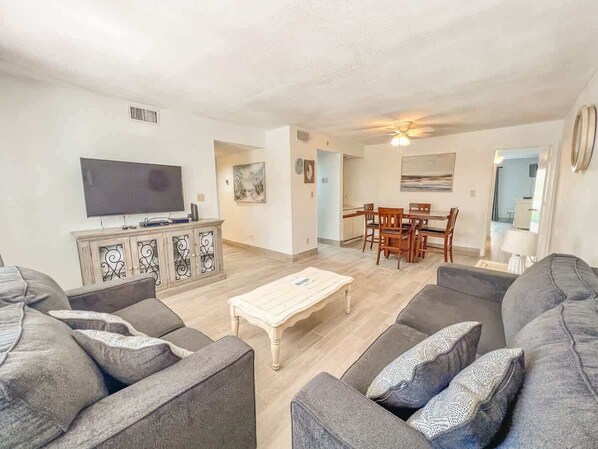 Sandy Toes offers a stylish retreat in a beautiful area close to ocean blvd and the beach. This studio unit has everything you need, including 2 double beds, linens and bath towels, free WiFi, a coffee maker and private patio. You can unwind by the shared pool or explore nearby restaurants and shopping.