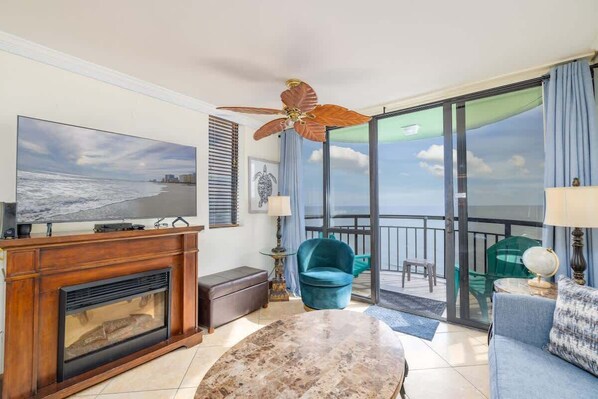 TV, fireplace - Oceanfront Penthouse, Amazing Views, Walk to Conv Center, Attractions & Dining (Myrtle Beach)