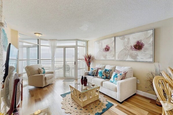 Living area - 7th floor ocean-view condo with balcony, W/D & AC - direct beach access (Myrtle Beach)