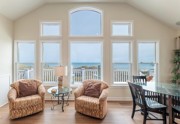 Enjoy watching the pelicans fly and dolphins play in the surf from your private dune-top deck and walkway to the beach. Relax and unwind by the oceanfront pool and six-person hot tub, or lounge all day on the expansive oceanfront deck. If you're in the mood for activity, play a game of volleyball or go exploring at the beach. In the evening, fire up the charcoal grill and enjoy a classic beachside cookout.