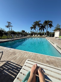 The condo was in a perfect location. Grounds and pools were pristine. It was actually very quiet, there were no barking dogs or kids running around, which at our age we appreciated. Tennis courts and shuffle boards were fun. The beds were very comfortable, with plenty of closets & dressers to unpack. It was nice to have 2 bathrooms for the 2 bedrooms. Perfect for 2 couples as they were spaced apart at the other end of the home from each other. Would definitely recommend this property.