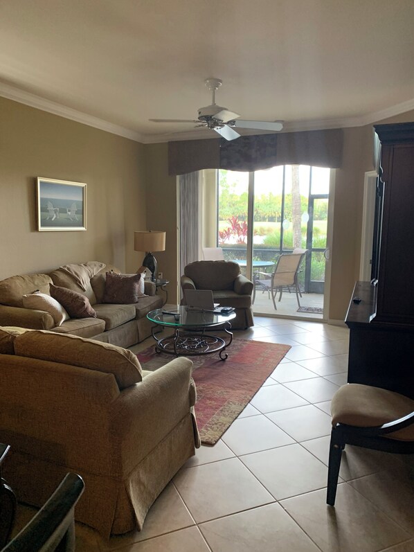 Get ready to relax in this enchanting 2-bedroom condo in North Naples. This gorgeous property features 1 king bed, 2 twin beds, 2 bathrooms with showers and provided amenities, and an additional office space with a sofa bed. With modern updates like AC, WiFi, a furnished and covered lanai, updated kitchen, outside grill, etc. guests will have everything they need for a comfortable stay with minimal personal additions needed. A snowbirds dream getaway Heritage Bay features 27 holes of championship level golf on the property, tennis and pickle ball courts, multiple pool throughout , state of the art fitness center with pool, hot tub, tiki bar, etc. and a beautiful club house renovated in 2022 with bar/grill, formal dining room, billiards, poker room, locker rooms, and more. Book now and enjoy everything that Heritage Bay has to offer. BOOKINGS MUST BE MADE 30 DAYS IN ADVANCE AND ARE SUBJECT TO MEMBERSHIP TRANSFER AND APPROVAL FEES TOTALING $700 ON TOP OF NIGHTLY RATE. 30 DAY ADVANCE MINIMUM REQUIRED FOR APPROVAL BY HERITAGE BAY HOA.