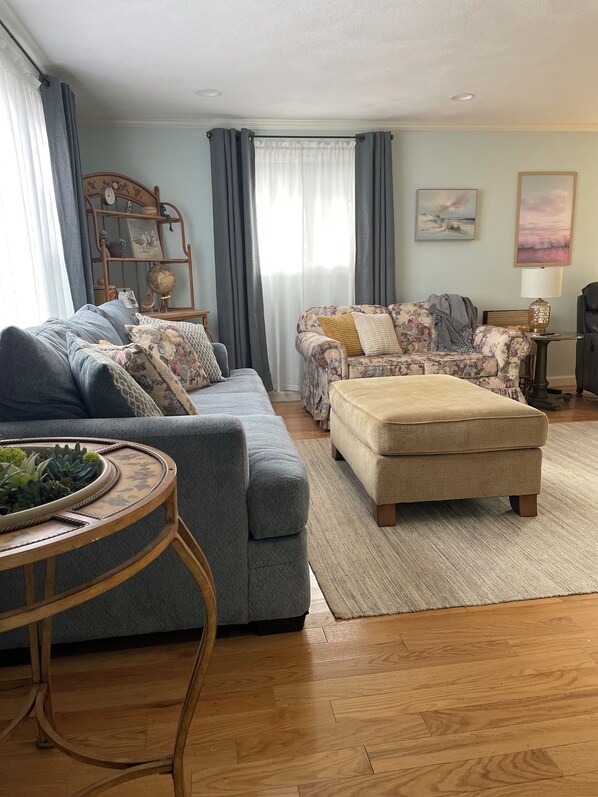 Make yourself at home in this 3-bedroom Narragansett retreat. This cool house features 1 queen bed, 2 full beds, and A queen sized air mattress is also available. There are 2 full newly renovated bathrooms with showers. Enjoy the amenities such as central AC, WiFi, a fully supplied kitchen, washing machine and dryer, and ceiling fans in all bedrooms. There are 3 rooms with couches and TV’s. The deck is right off of the newly applianced kitchen and has a new barbecue grill. Parking is available in the driveway for 4 vehicles. This location is 1 mile from the private Kelly Beach, which is available to Bonnet residents only and their guests with no fees (beach chairs and coolers are in the shed). Although there is no parking for cars at Kelly Beach, a shuttle bus is available on weekends for transportation in summer months. Many guests drop off their family members and walk or bicycle back to the beach. There is bicycle parking available at the beach as well. The house is also a short walk to “little beach” with views of Jamestown and the Newport Bridge. Beautiful Narragansett beaches and many excellent restaurants are just a short drive away. This location is also very convenient for day trips to Newport, Watch Hill, Jamestown and the University of Rhode Island. Please message the owner for more details. We look forward to hosting you - you will not be disappointed!