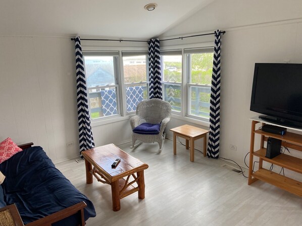This house is located in a private community, Off Shore. One of 5 houses and mobile homes. 2 bedrooms, open living room and kitchen. Wrap around deck and an upper deck with a panoramic view of Pt Judith light house, Block Island and the Port of Galilee. 2 Bedrooms, one inside full bathroom and outside warm shower. Monthly rentals only. This home is small but perfect for a beach getaway. Beautiful views from the top deck. This house is not a five star hotel (that is why it is only $6000 per month) But the location to the beach and sunsets you see from the house - 5 Star There is an outdoor grill. Kitchen has electric stove top and a toaster oven instead of traditional oven. There is an air conditioner in the bedroom and can cool down the entire home if needed. The ocean breeze has always worked perfect. Walk right to the beach from the house. No parking worries. This home is set up for a family of 4. There are no parties allowed, extra guests must get Landlord approval. No Subletting. Available for June and August