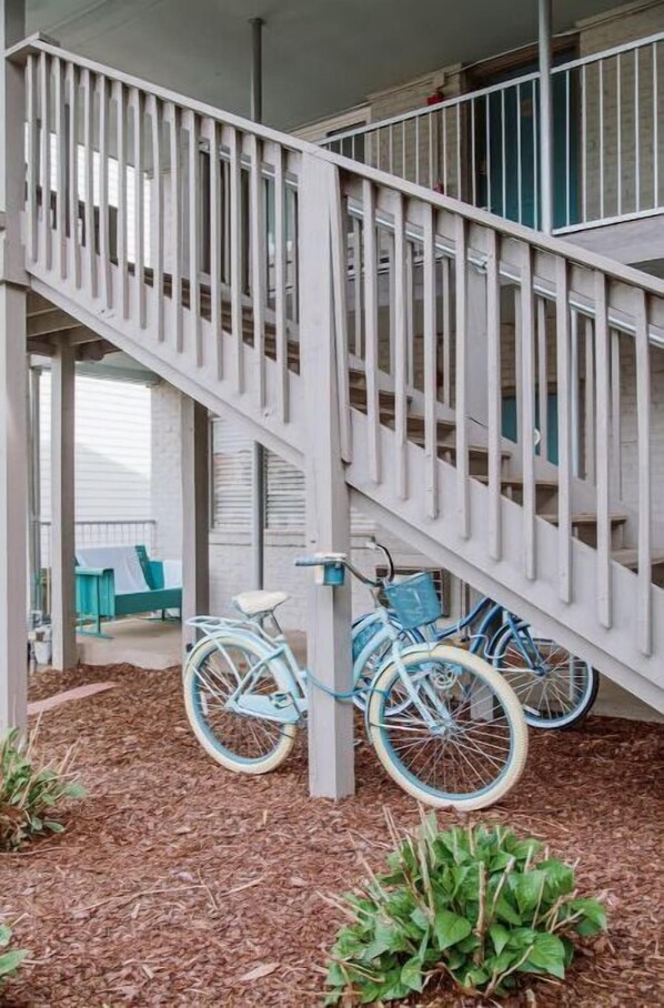 • 2 Bikes provided for your use • Walkable to restaurants & bars • Onsite pool (open seasonally) • Equipped kitchen • Free WiFi • Free, on-site parking