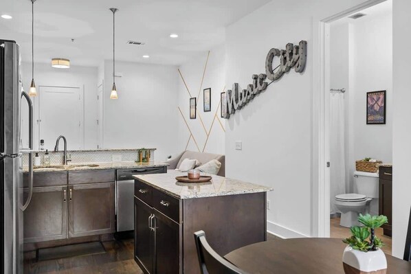 Each unit comes with a fully equipped kitchen, complete with essential cooking supplies, granite countertops, and stainless steel appliances. Enjoy entertainment with smart TVs in both the living room and bedroom. Experience ultimate comfort with a Queen bed, ensuring a restful night's sleep. The perfect home base for your stay also includes a pull-out sofa. It also has an air mattress in the closet.