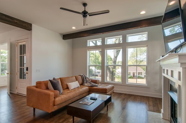Living Area – Cozy and inviting, with comfortable seating, a Smart TV, and access to plenty of natural light, making it a great space to relax.
