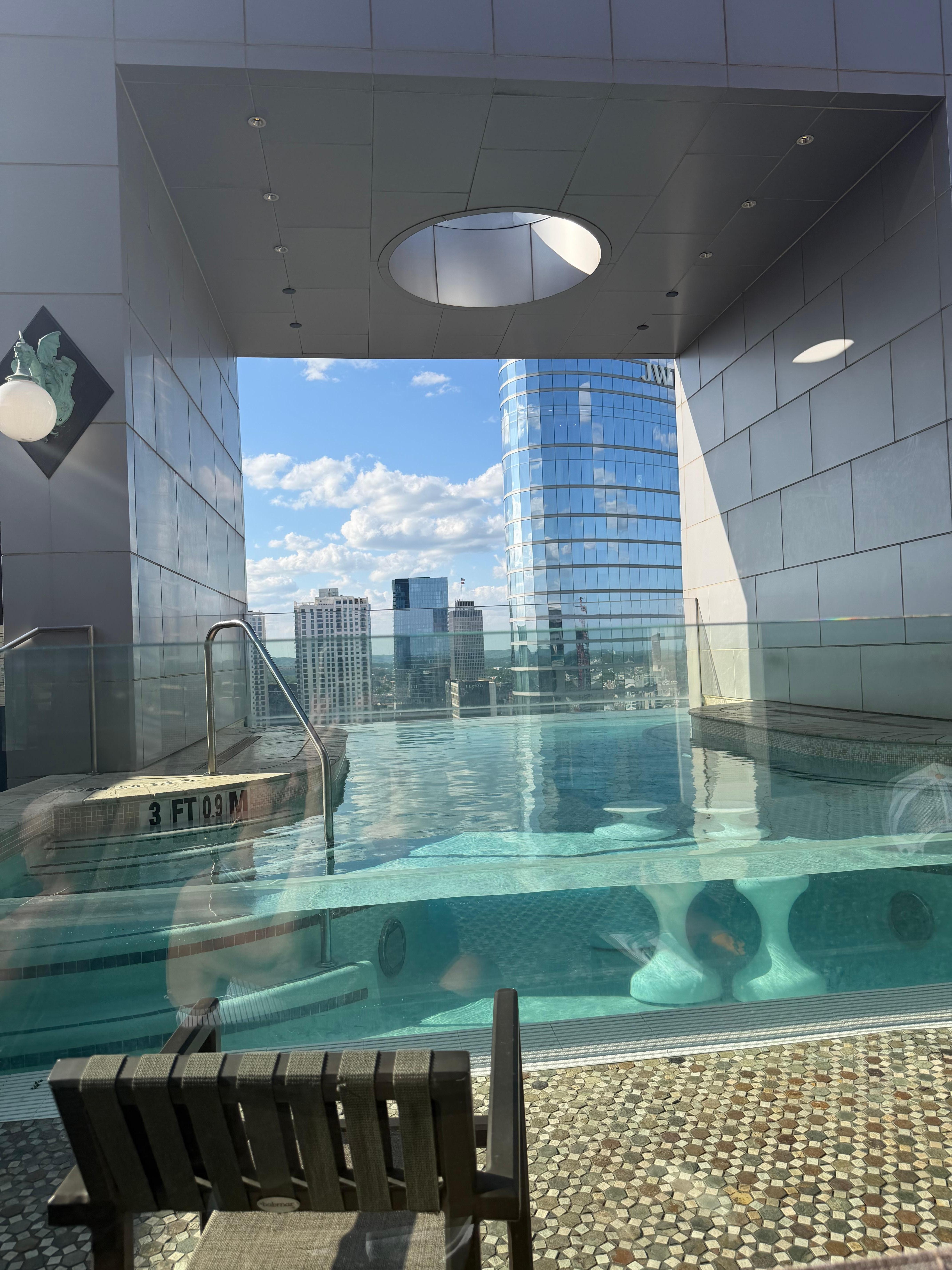 every member of the staff was exceptional—from parking to front desk to hostess at roof top bar. The hotel lobby is impressive. we received a complimentary room upgrade with nice views of the city. first rate experience.