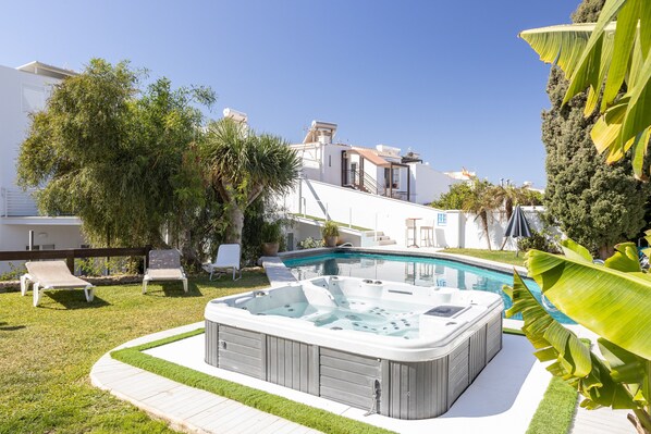 A shared outdoor area, consisting of a pool, a jacuzzi, a garden, garden furniture and a barbecue, is also available for your use.