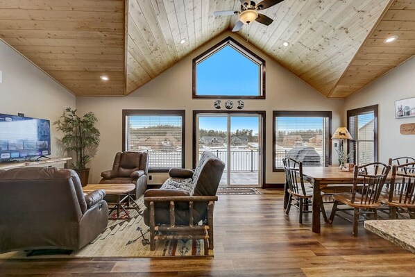 Escape to Castle Rock & Buckhorn Beach Lake Home, a newly built retreat nestled near Buckhorn State Park and Wisconsin Dells. Unwind in the hot tub, enjoy water activities on your private sandy beach, or relax by the electric fireplace with smart TVs nearby. This 4-bedroom home offers a full kitchen and two family rooms.