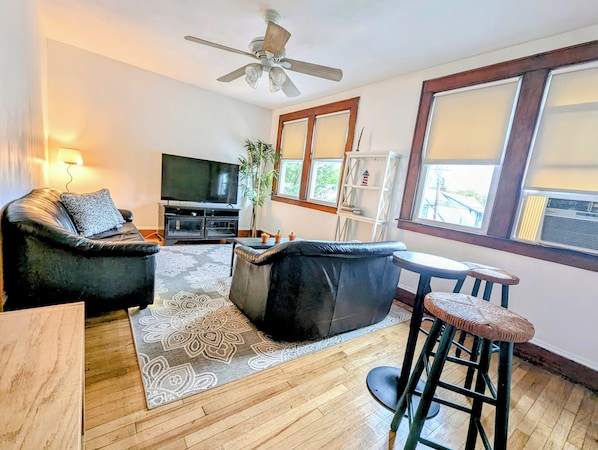 This inviting unit features two bedrooms and one bathroom, complete with a convenient washer and dryer. You'll find plenty of street parking plus a dedicated on-site parking space. For your comfort, Wi-Fi, a smart TV with YouTube TV, AC, and heat are all included.