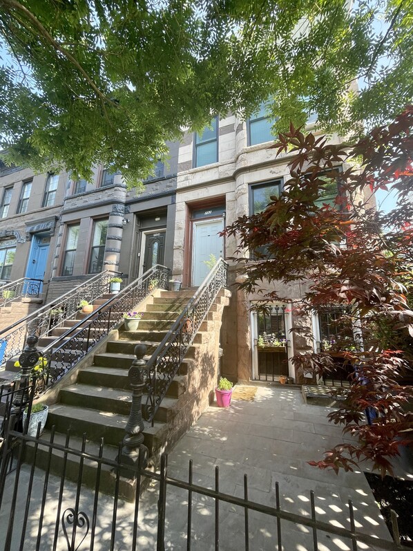 In this charming neighborhood of Bedford-Stuyvesant, Brooklyn, you'll find our inviting 2-bedroom duplex with a big backyard and inviting deck. As you step inside, you'll be greeted by a fully stocked kitchen, complete with a stove, oven, refrigerator, and all the essential appliances you need to whip up delicious meals. Unwind in the comfortable living room, where you can catch up on your favorite shows or curl up with a good book from our selection. When it's time to refresh, you'll find two bathrooms, complete with towels and basic toiletries, as well as air conditioning and heating to keep you comfortable year-round.