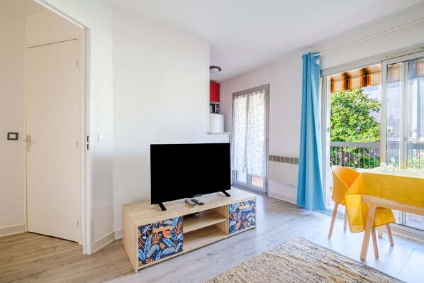 The holiday apartment Cros de Cagnes 2 pièces - det001, featuring a step-free interior, is located in Cagnes-sur-Mer and attracts guests with its proximity to the beach. The 30 m² property consists of a living room, a kitchen, a bedroom, a bathroom, and an additional toilet, and can accommodate up to 2 people. Additional amenities include high-speed Wi-Fi (suitable for video calls), a television, air conditioning, and a washing machine. The building has an elevator. This holiday rental also offers a private balcony, ideal for relaxing in the evening.