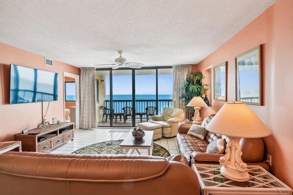 Living area - Stunning views from 4 bedroom, 3 bath oceanfront condo in Ocean Drive. (North Myrtle Beach)