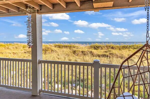 Million dollar Oceanfront View! Enjoy the Sunrise and Sunsets. It is located right on the beach. As soon as you walk in the front door you see the ocean. It's absolutely breathtaking. When you're on the beach you feel like you are on your own private island away from the hustle and bustle of the world. Come escape to your own private paradise, but still close to all the great attractions of the area to keep the family entertained.