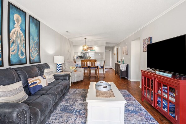 WITH A FULLY-EQUIPPED KITCHEN, you'll have a tough decision: casual in-house meals or dining out at some of the fantastic area restaurants. For suggestions, ask our guest service representatives or check the dining page on our website. And it's a leisurely stroll to the shops, cafes, and nightlife of Ocean Drive's Main Street.