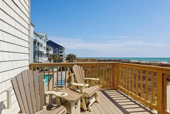 Oceanfront condo with spectacular ocean view, beach access & deck