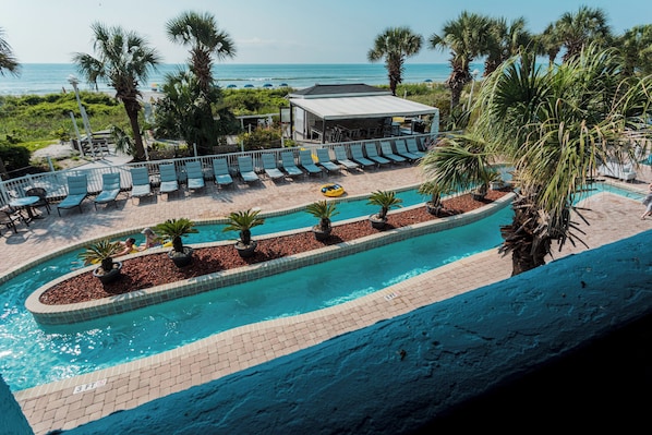 The resort is designed for both relaxation and family-friendly fun, featuring multiple pools, a lazy river, hot tubs, and beautifully landscaped grounds perfect for a leisurely stroll. Whether you're unwinding after a day at the beach or exploring nearby attractions, the resort provides a comfortable and convenient home base.