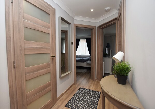 In the heart of town, this modern one-bedroom apartment welcomes you with a beautifully decorated space. Unwind on the king-size bed or sofa bed, and enjoy free WI FI , a TV with Netflix included. A fully equipped kitchen has everything you need to feel at home.